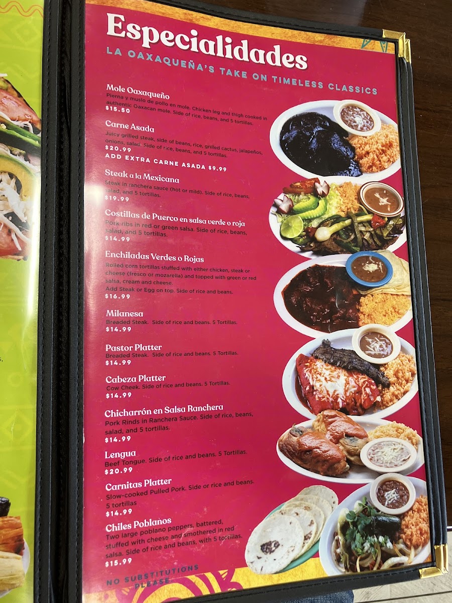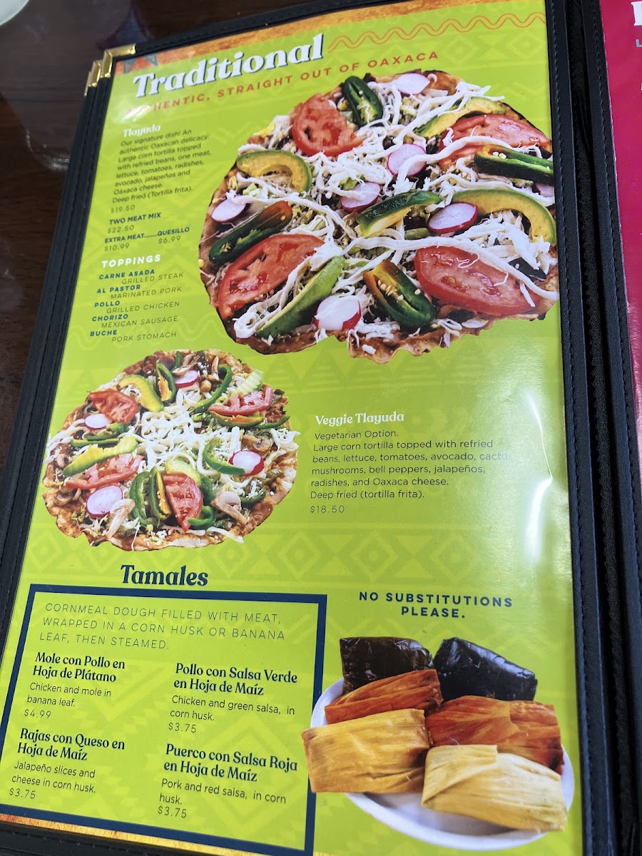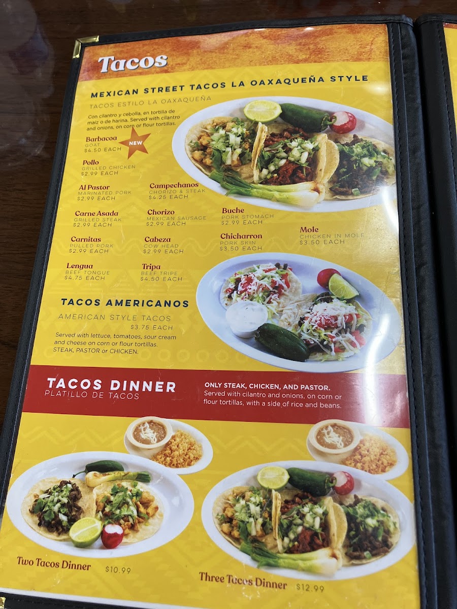 The menu here is a celebration of traditional Oaxacan cuisine, offering everything from juicy tacos to savory tamales, all prepared with the freshest ingredients. Whether you're in the mood for the classic carne asada or looking to try something a little different like the tlayudas or memelas, there's something for every palate. And don’t forget to pair your meal with a refreshing agua fresca or a cold beer.